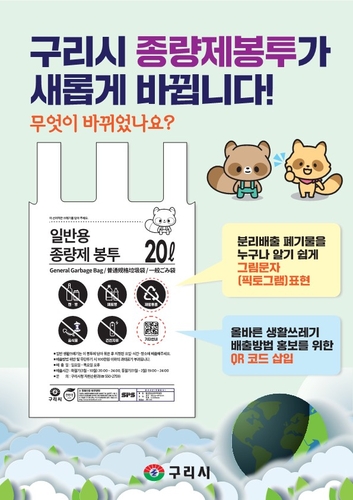 구리시(시장 백경현)는 7월부터 기존 글자 중심에서 그림문자(픽토그램)를 활용한 새로운 디자인으로 적용한 종량제봉투를 제작한다고 밝혔다.