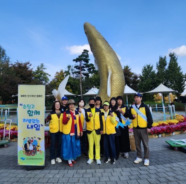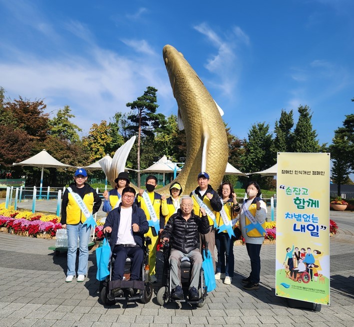 인천시 장애인 활동지원 제공기관 연합회 회장(이한덕)은 지난25일 회원들과 함께 인천 계양 경인아라온 국화축제 현장에서 생수와 시장가방을 배포하며 장애인 인식개선 캠페인 행사를 가졌다.