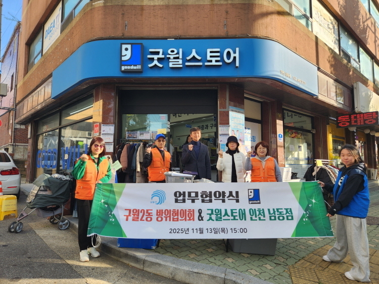 인천 남동구 구월2동 방위협의회(회장 고미송)는 지난 11월 13일, 비영리 사회복지법인 굿윌스토어와 발달장애인 자립 지원을 위한 업무협약(MOU)을 체결하고 후원 물품을 전달했다.