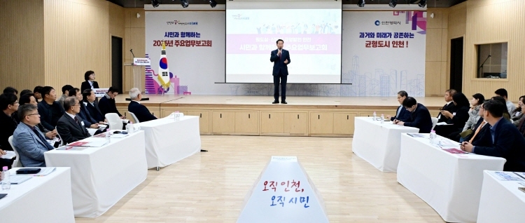 인천광역시(시장 유정복)는 11월 27일 상상플랫폼에서 ‘원도심·신도심 균형발전’을 주제로 2026년 주요업무보고회를 개최했다.