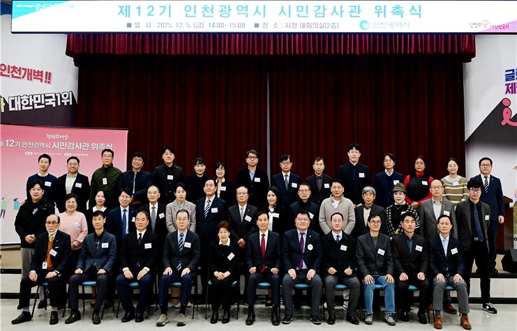 인천광역시(시장 유정복)가 시민과 함께 더욱 투명하고 공정한 시정 구현을 위해 12월 5일 시청 대회의실에서 ‘제12기 인천시 시민감사관 54명’에 대한 위촉식을 개최했다고 밝혔다.