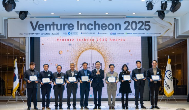 인천광역시(시장 유정복)와 인천벤처기업협회(회장 서동만)는 12월 23일 송도 라마다호텔에서 ‘Venture Incheon 2025 대회’를 개최하고, 지역의 우수 벤처기업인들을 격려했다.