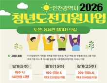 인천광역시(시장 유정복)는 청년의 경제활동 참여와 노동시장 진입을 지원하기 위해 ‘청년도전지원사업’ 참여자를 1월 29일부터 9월 30일까지 모집한다고 밝혔다. ‘청년도전지원사업’은 구직단념청년, 자립준비청년, 가습기 살균제 피해 청년 등을 대상으로 심층 상담, 진로탐색, 취업 역량 강화 등 맞춤형 프로그램을 제공해 구직 의욕을 높이고 사회 진입을 돕는 프로그램이다. 인천시는 신청일 기준 최근 6개월 이상 취업, 교육 또는 직업훈련 참여 이력이 없는 18세 이상 39세 이하 청년을 대상으로 총 264명을 선발해 지원할 계획이다. 사업은 참여 기간에 따라 ▲단기(5주 이상) ▲중기(15주 이상) ▲장기(25주 이상) 과정으로 운영된다. 단기 참여자에게는 50만 원의 참여수당이 지급되며, 중기 참여자에게는 참여수당과 혜택을 포함해 최대 220만 원, 장기 참여자에게는 참여수당과 혜택을 포함해 최대 350만 원까지 지원한다. 참여를 희망하는 청년은 인천청년포털(인천청년공간 유유기지 누리집, https://youth.incheon.go.kr/space/inuu/challenge/info.jsp)을 통해 신청할 수 있으며, 자격 심사를 거쳐 최종 선정되면 프로그램에
